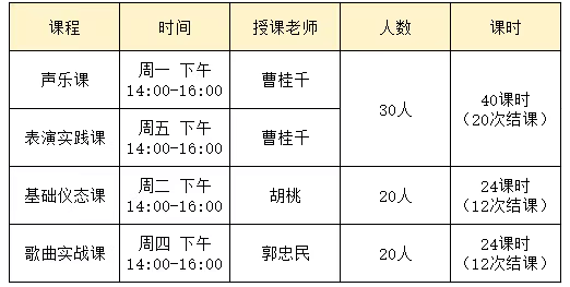 特邀请到著名影视歌多栖女导演曹桂千参与授课指导,声乐歌剧课火热开启。